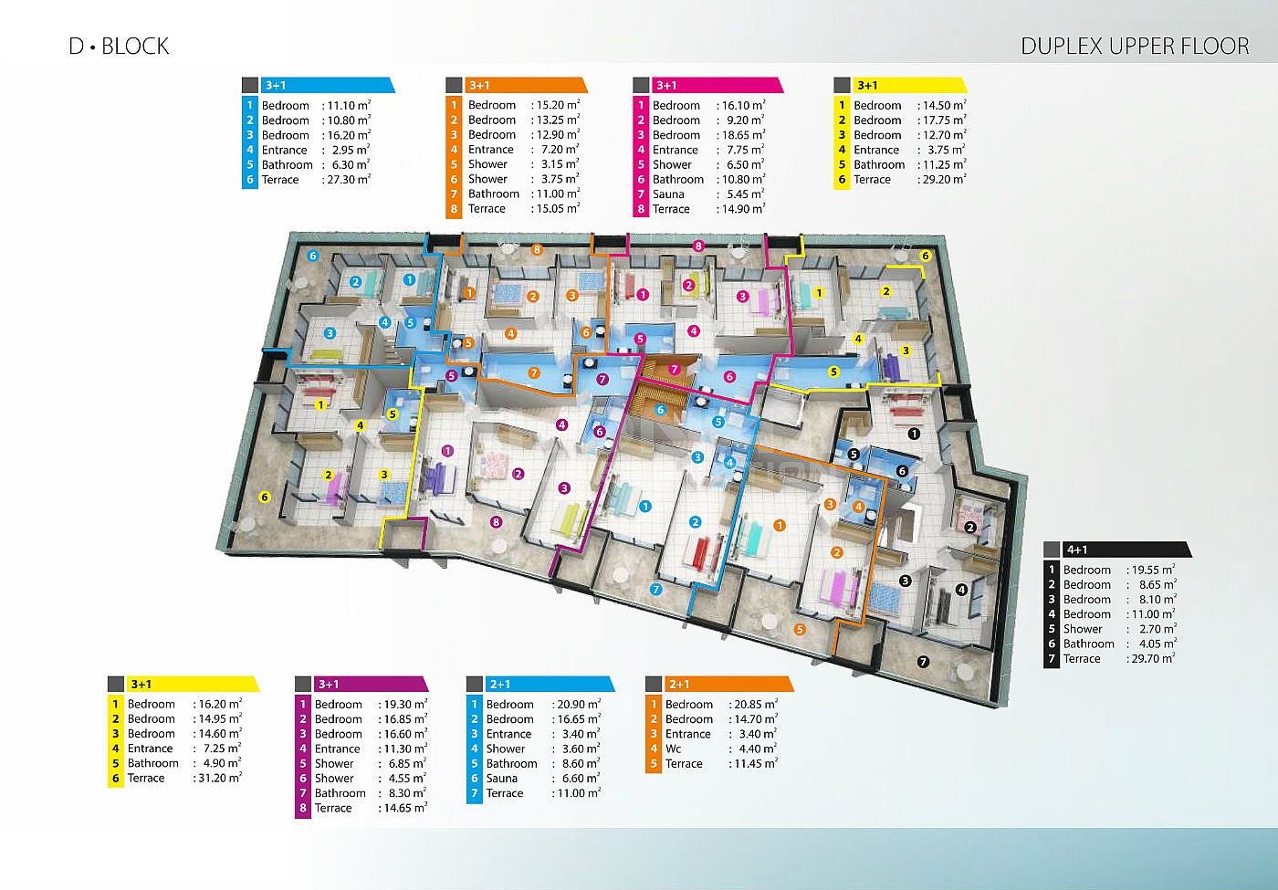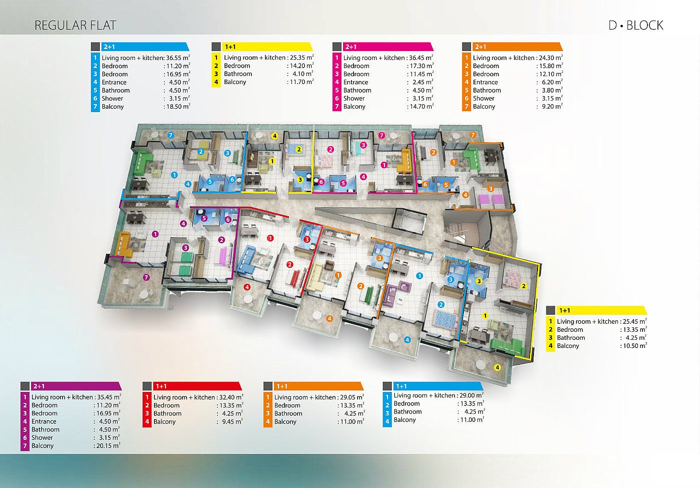 D BLOCK 45 Кв : ( 17 Кв 1+1 62-70 м2 ) ( 12 Кв 2+1 86-110 м2 )