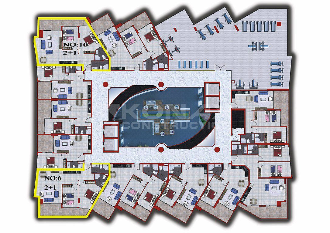 Мы строим для вас комфортабельный и уютный комплекс, где есть все, что нужно для вашего отдыха: море , солнце и красивая природа. Проект комплекса Konak Seaside Tower строится на 6500м2 и состоит из 1- го блока в 11- ть этажей 160кв. Из больших окон квартир и балконов замечательный вид на море и горы. Всю территорию комплекса украшает красивый зелёный газон и декоративные деревья.